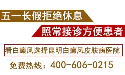 【温馨提示】:为避免广大患者预约就诊排队,昆明白癜风皮肤病医院特提前开通预约绿色通道,帮助白癜风患者解决看名医难的问题,患者朋友即日起可通过拨打免费热线电话:183-1395-2368进行预约。
